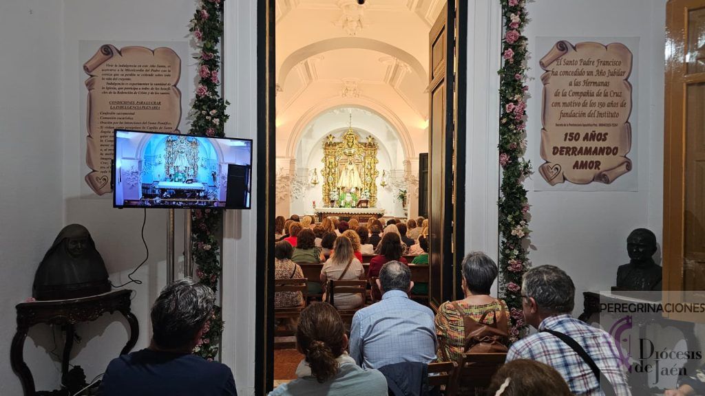 Posteriormente, comenzaba la Santa Misa. Durante su homilía, Monseñor Chico Martínez recordó la figura de la fundadora y la vigencia de su carisma. “Como Iglesia que peregrina en Jaén, nos reunimos en este lugar tan singular, para elevar nuestra acción de gracias por el 150 aniversario de la fundación de la Compañía de la Cruz. Lo hacemos con un corazón agradecido, contemplando la obra que el Espíritu Santo suscitó en el alma humilde y ardiente de Santa Ángela de la Cruz”.