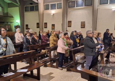 El 1 de marzo iniciamos nuestra aventura espiritual. Tras el vuelo desde Madrid, los peregrinos llegamos a la Ciudad Eterna con el corazón lleno de expectativas. Una vez instalados en nuestros alojamientos, celebramos la primera Eucaristía en la Iglesia de la Santísima Sangre de Nuestro Señor Jesucristo, un momento perfecto para agradecer por el viaje y prepararnos espiritualmente para los días que nos esperaban.