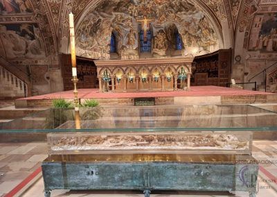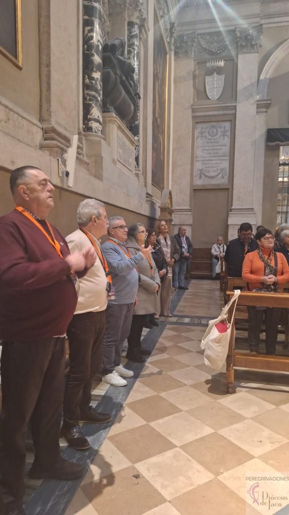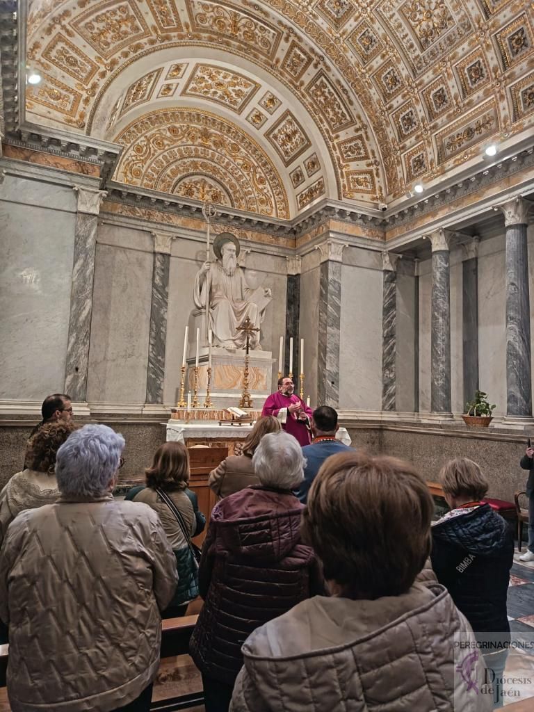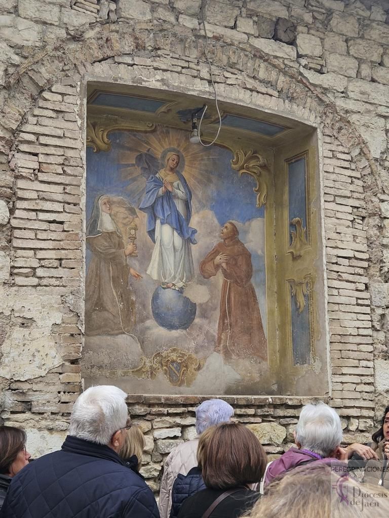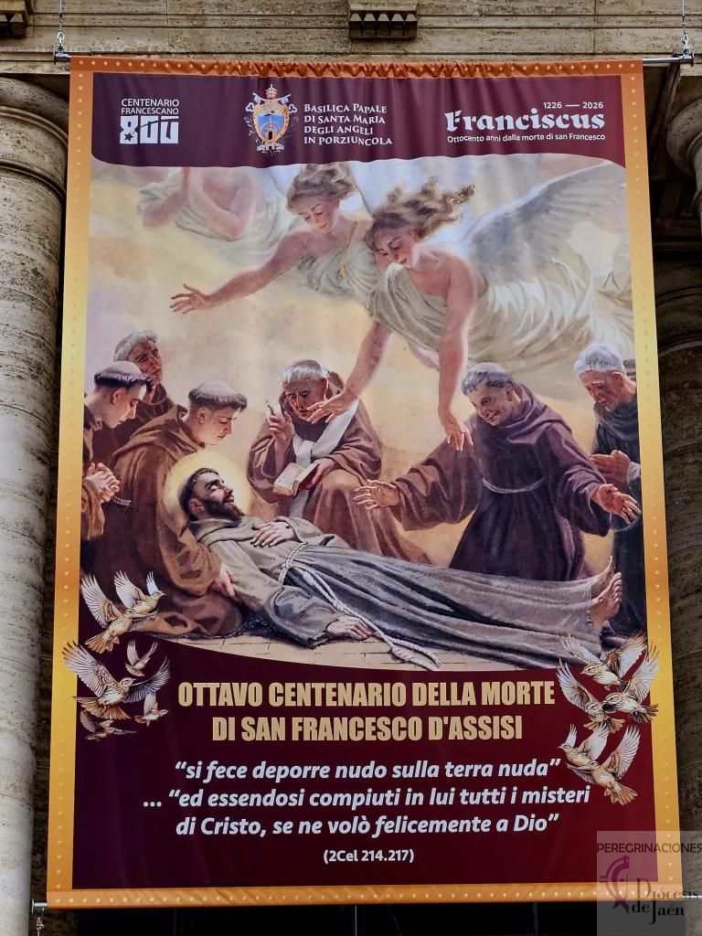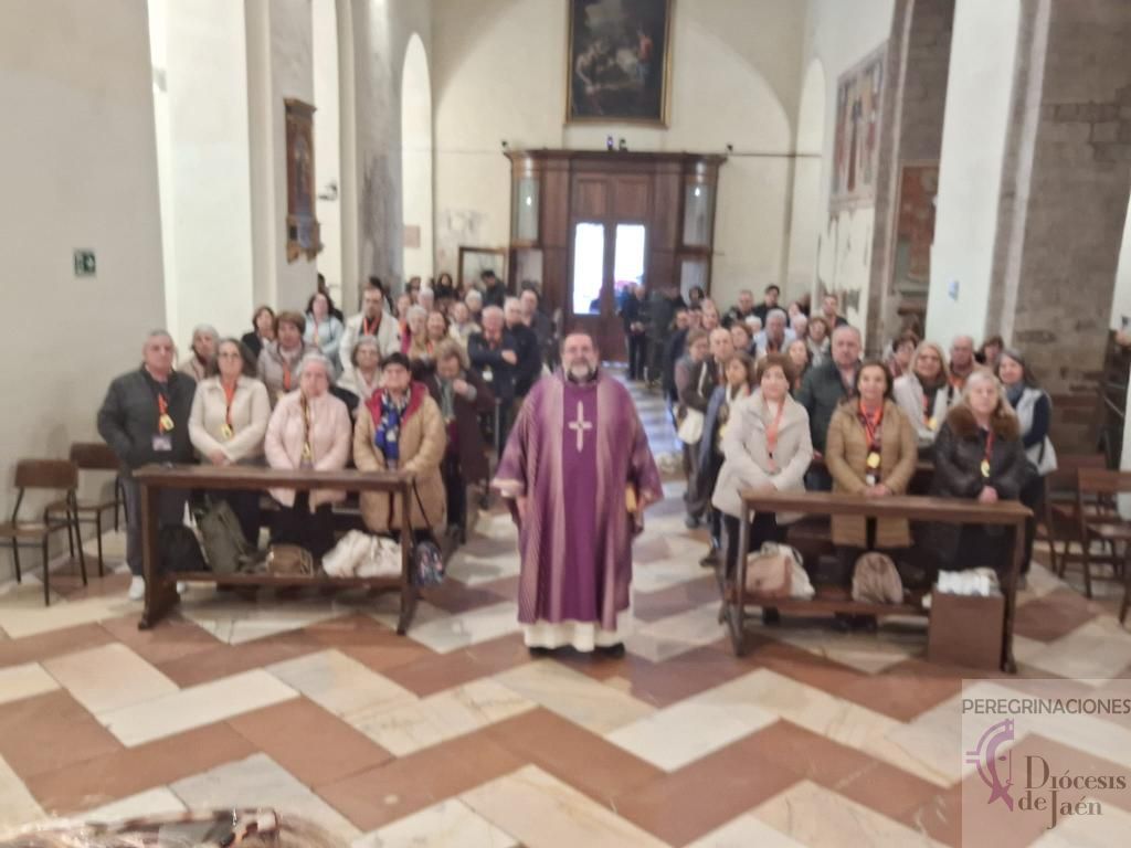 Tras la comida, celebramos la Eucaristía en la iglesia de San Carlo Acutis, Santa María la Mayor. Pero el momento cumbre llegó a las 17:30 horas cuando pudimos venerar los restos de San Francisco de Asís, en el 800 aniversario de su muerte. ¡Qué privilegio tan inmenso! Muchos peregrinos llegaban a Asís sin conseguir autorización para esta veneración extraordinaria que solo se celebra del 22 de febrero al 22 de marzo, pero nuestro grupo de la diócesis de Jaén tuvo la bendición de participar en este acontecimiento histórico y profundamente espiritual.
