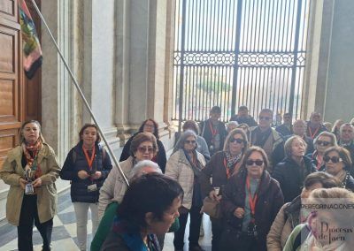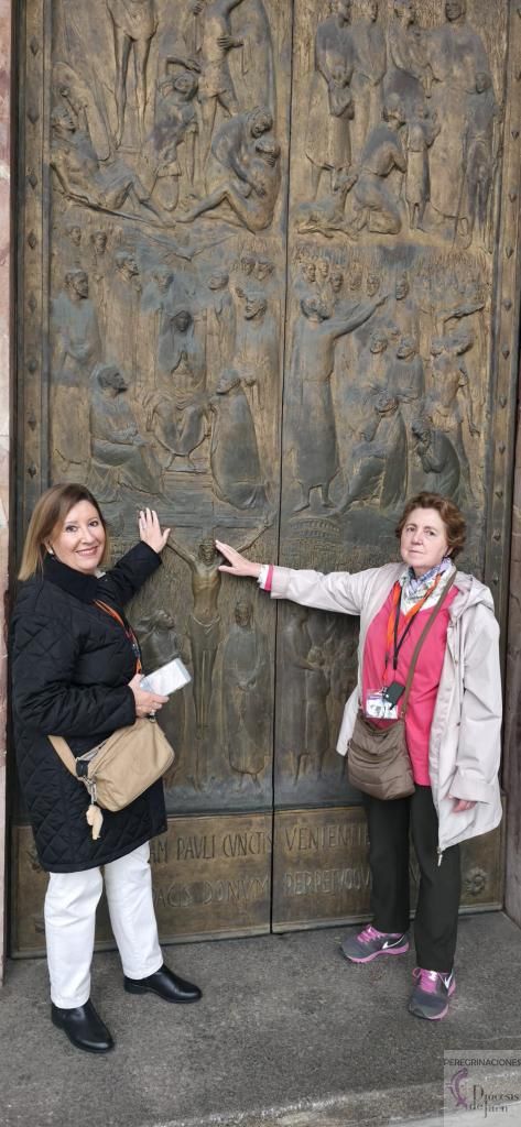 El segundo día nos regaló uno de los momentos más extraordinarios de toda la peregrinación. Por la mañana visitamos la Basílica Papal de Santa María de los Ángeles, donde se encuentra la Porciúncula, cuna sagrada de la orden Franciscana. Con guía local y auriculares, cada explicación cobró vida.