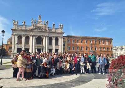 El tercer día descubrimos la magnificencia de Roma a través de un tour panorámico con guía local. Visitamos las Basílicas Mayores de San Juan de Letrán, Santa María la Mayor y la Escalera Santa, espacios que respiran historia y espiritualidad en cada rincón. En Santa María la Mayor tuvimos el honor de celebrar la Eucaristía, un momento de comunión profunda que nos unió aún más como grupo de peregrinos. Cada basílica nos reveló tesoros artísticos y espirituales que enriquecieron nuestra fe y nuestro conocimiento de la tradición cristiana.